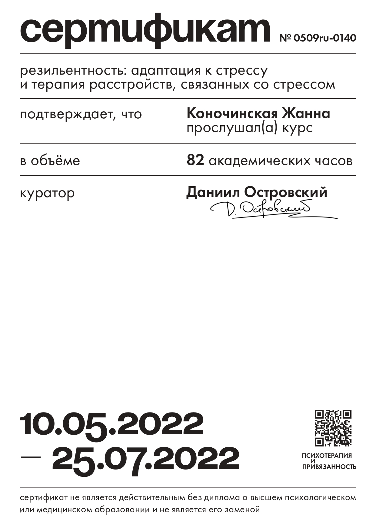 На особистому досвіді я знаю, що психотерапія несе величезний позитивний внесок у життя людини, і сподіваюся, що для вас вона стане поворотною подією.