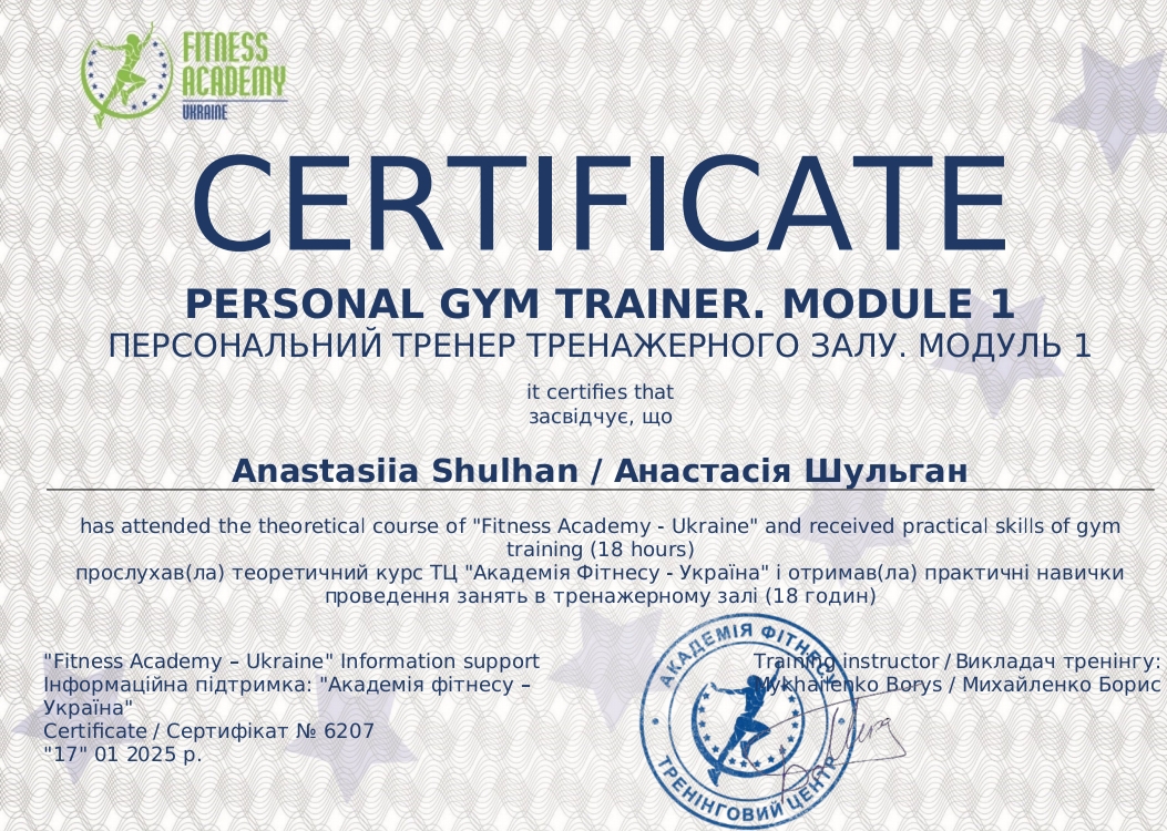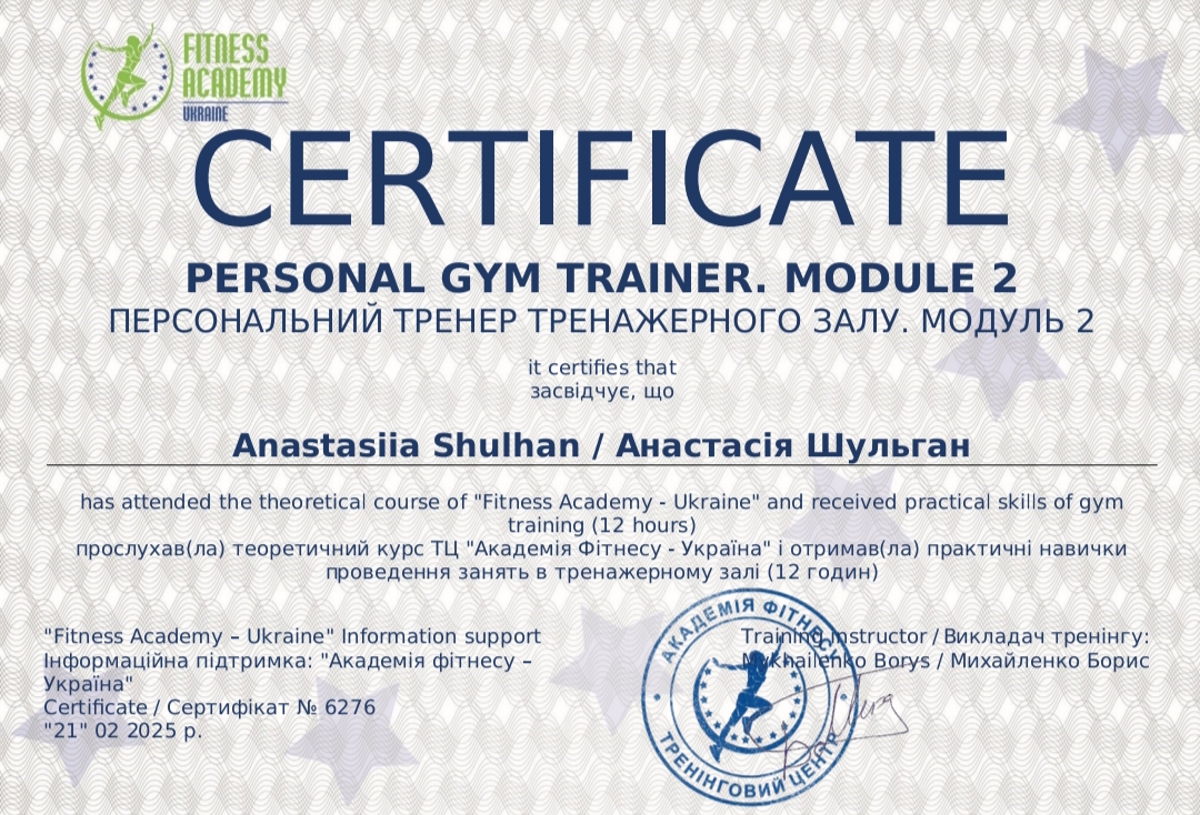 Маю більше 2-ох років досвіду у тренерській діяльності та супроводі клієнтів . А також більше року, практики у масажній діяльності .