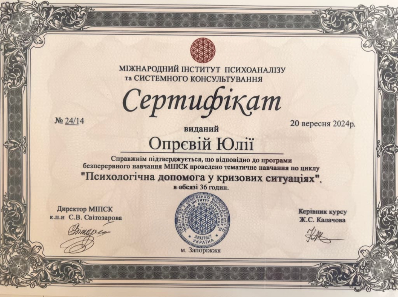 Мене звати Юлія, я психолог працюю в методі психоаналіз.