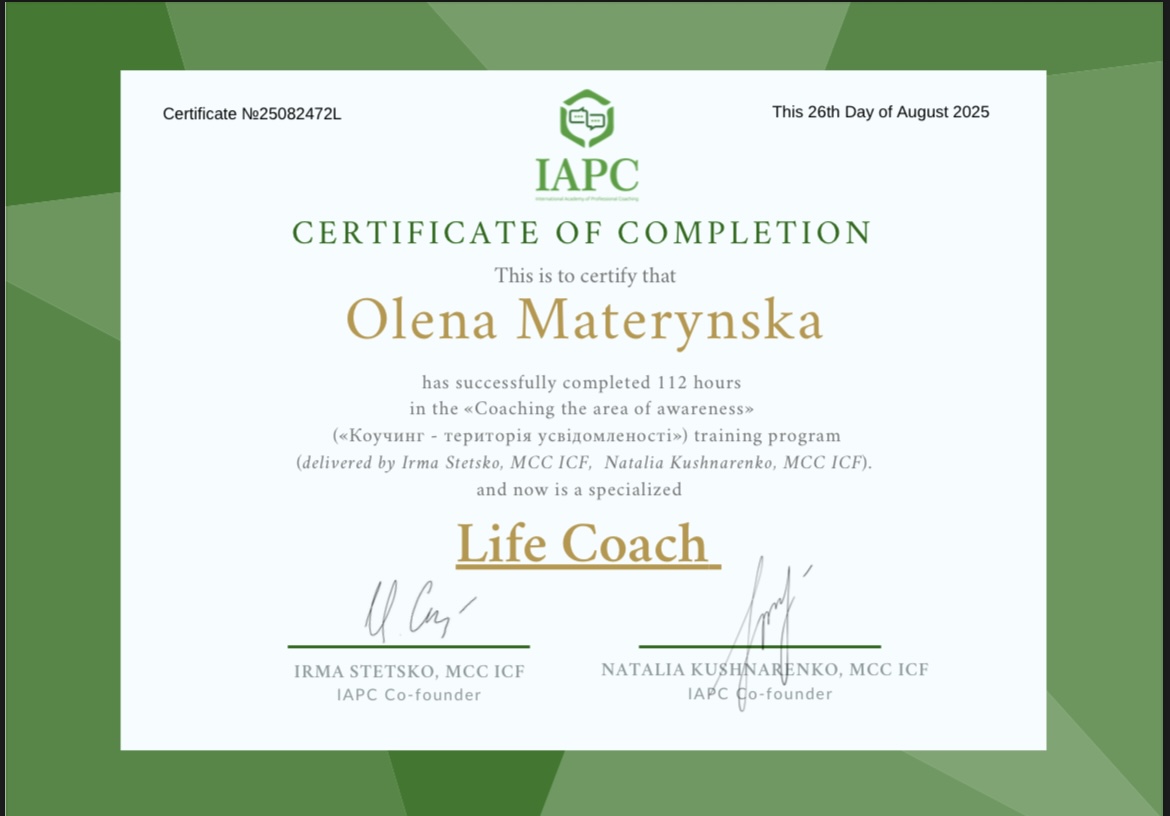 Я спеціалізуюся на індивідуальних коуч-сесіях, де допомагаю клієнтам: