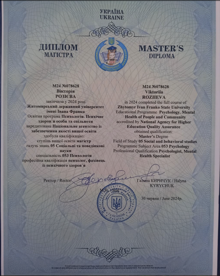 Мене звати Вікторія, я психологиня, і моя робота — підтримувати людей у моменти, коли самотужки впоратися стає важко. Я знаю, як важливо мати поруч людину, яка приймає без осуду та допомагає знайти нові відповіді на старі питання.
